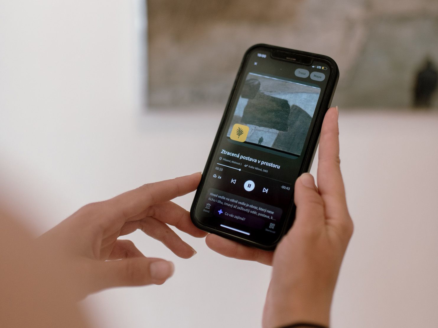 K setrvání návštěvníků v prostorách galerie přispívá nejen samotný průvodce, ale také velmi dobře připravené kurátorské vyprávění. Z poslechu je patrné, že se nejedná o zkopírované popisky z katalogu, ale že texty byly formulovány přímo pro aplikaci ve stejném tónu, jaký kurátor využívá při komentovaných prohlídkách. Jednotlivá zastavení jsou krátká, návštěvníky prostorem jasně navigují a používají jazyk, který není přehnaně akademický. Interpretace děl na sebe vzájemně navazují, což podněcuje zvědavost a chuť poslechnout si další stopu. Z dosavadních zkušeností zaměstnanců památníku vyplývá, že návštěvníci hodnotí kvalitu průvodce velmi kladně, a to i při poslechu v různých jazycích. Vyprávění je plynulé a hlasy narátorů věrohodné, drobné zádrhely se objevují jen výjimečně, jako například u výslovnosti jmen či názvů míst. Někteří návštěvníci podle kurátora výslovně oceňují, že si díky poslechu dokáží lépe zapamatovat konkrétní díla i informace, protože výklad není zahlcující a přirozeně provází diváka výstavou.