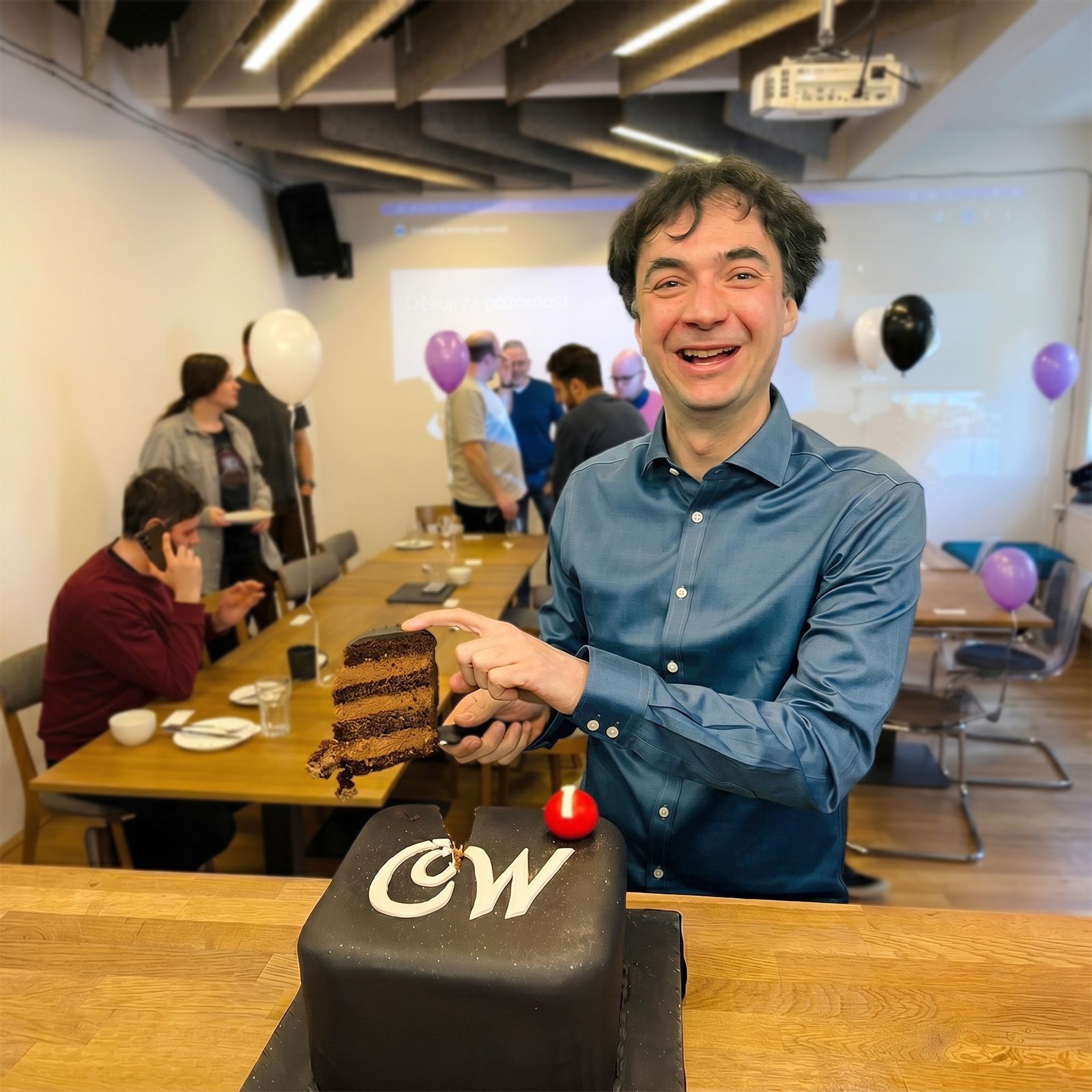 Cabinet of Wonders founder Lukáš Pilka cuts the birthday cake.
